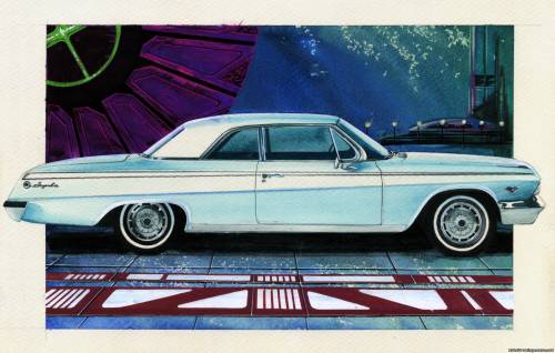 Что-то из очень старенького. Под влиянием футуристических иллюстраций Сида Мида решил сваять что-то наподобие с Шевроле. Вся иллюстрация косячная, так что особо придираться не стоит. Гуашь на акварельной бумаге.