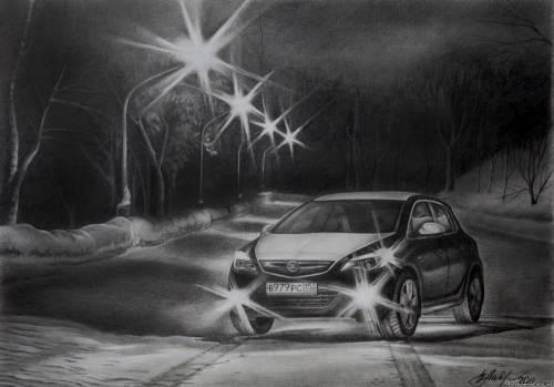 Белая пастель, карандаши 2Т, В, НВ, 3В, 6В